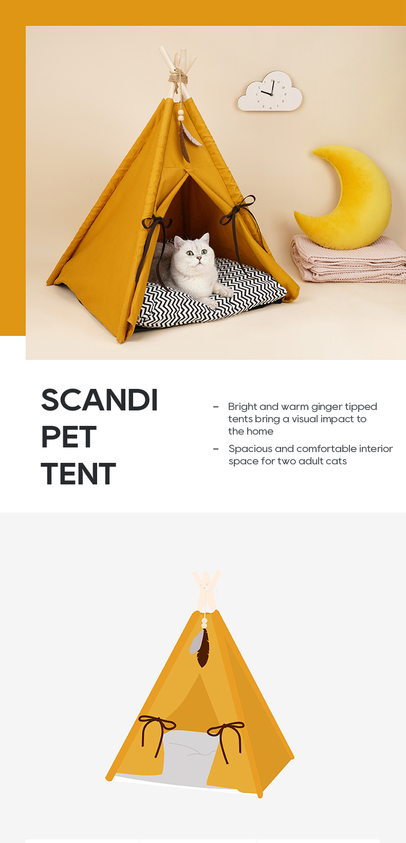 Sunset Yellow Pet Tent Cat Nest